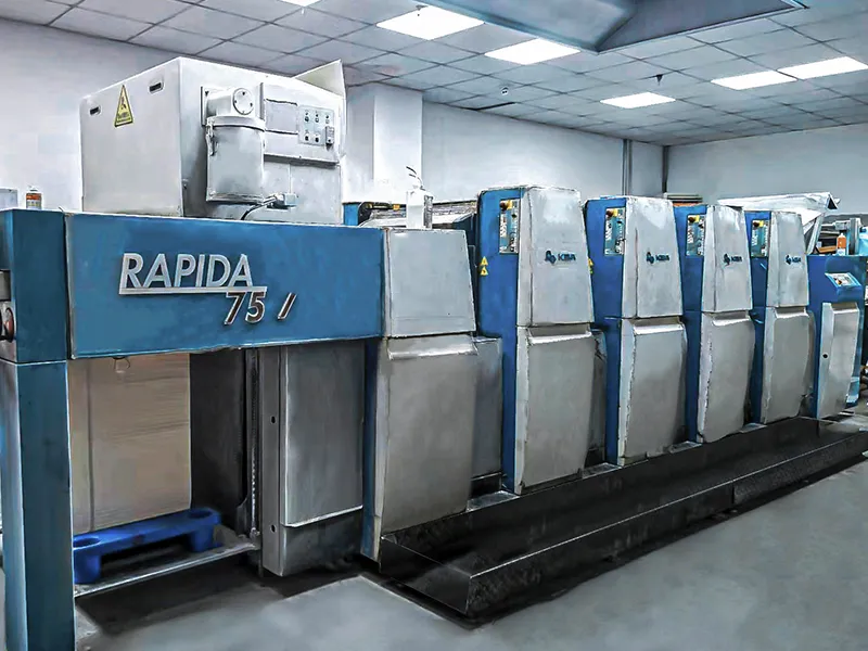 ■機械:ドイツ製KBA Rapida 75E(6色)、KBA Rapida 75(4色)印刷機をはじめ、筋入れ、型抜きなどの補助設備を備えた先進の機械を備えています。
